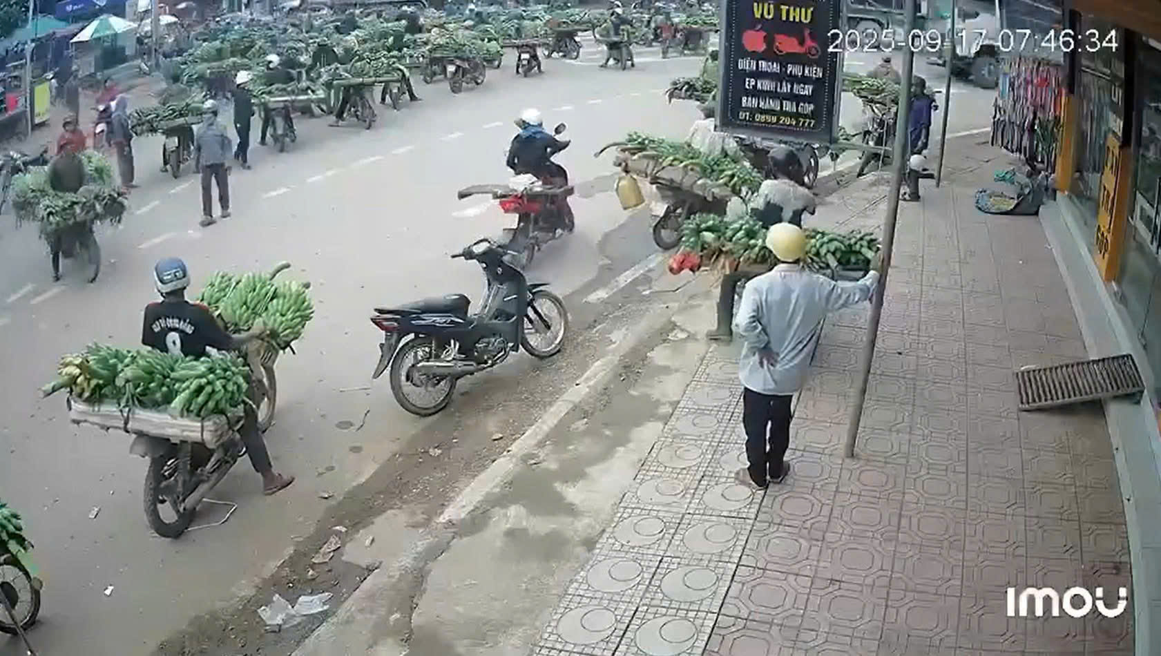 Theo video từ camera người dân ghi lại, chiếc xe tải lao từ dốc cao lao vào chợ chuối, tông vào rất nhiều xe máy và người, khiến khung cảnh trở nên hỗn loạn, mọi người la hét, sợ hãi.
