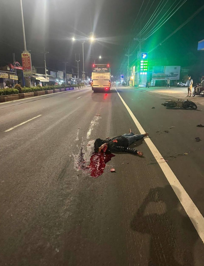Đồng Xoài,Đồng Nai(Bình Phước cũ):TN nghiêm trọng vacham giữa xe khách và xe máy,khiến 1 người tv không còn nguyên vẹn