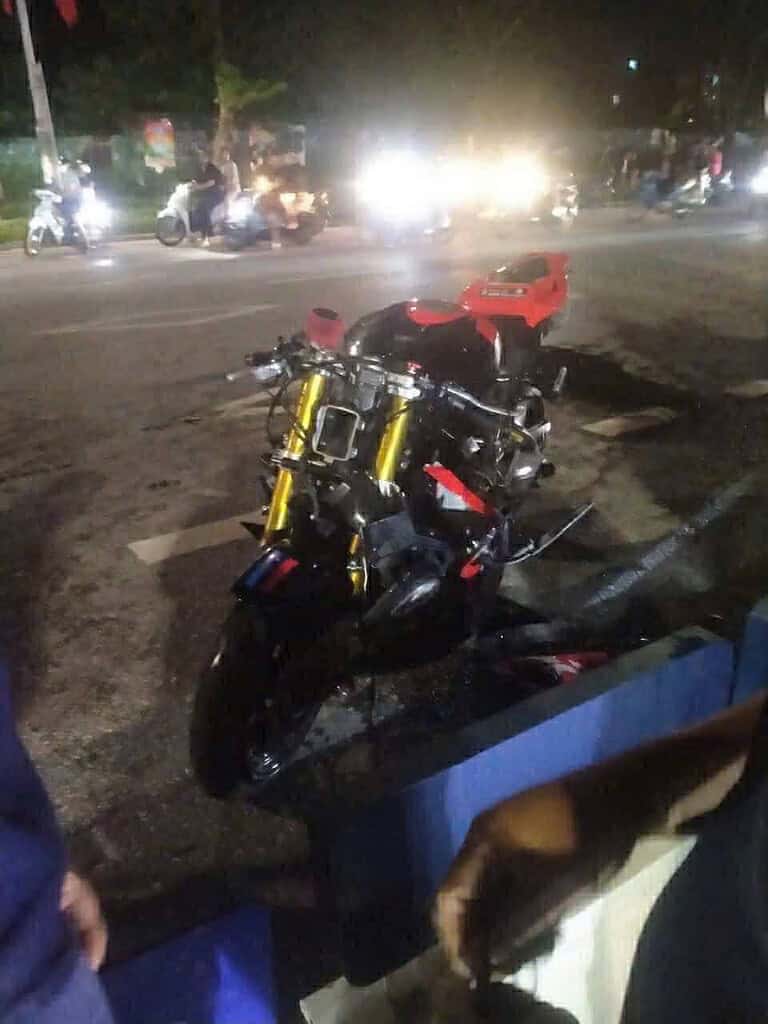 Chiếc xe máy phân khối lớn trong vụ tai nạn (Ảnh: Trần Thế Đạt).