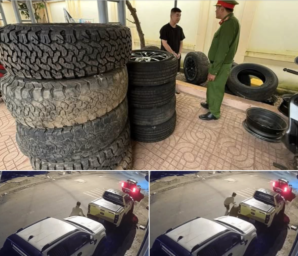 ‼ Thanh niên tr/ộm 13 bánh ô tô Ford Ranger vì bị chủ nợ “dí”