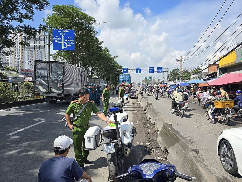 Sáng nay 14/10, nữ sinh học lớp 11 bị xe container cán c.h.ế.t trước chợ đầu mối nông sản Thủ Đức (đường Đỗ Mười, phường Tam Bình, TPHCM).