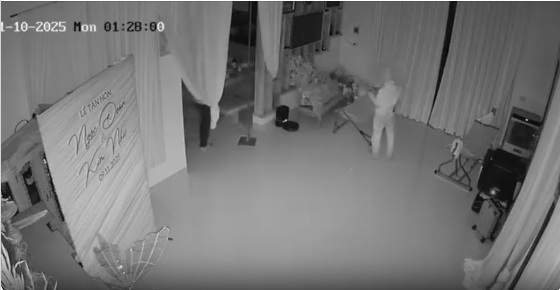 Theo camera an ninh ghi lại, 2 đối tượng trùm kín mặt đột nhập nhà dân trong đêm. Lưng giắt da.o, tay cầm bình xịt nghi là thuốc mê, chúng lục lọi tài sản của gia đình. Thậm chí một đối tượng còn đứng ngoài cửa phòng ngủ canh chừng cho đồng bọn cạy tủ đựng tiền mừng đám cưới.