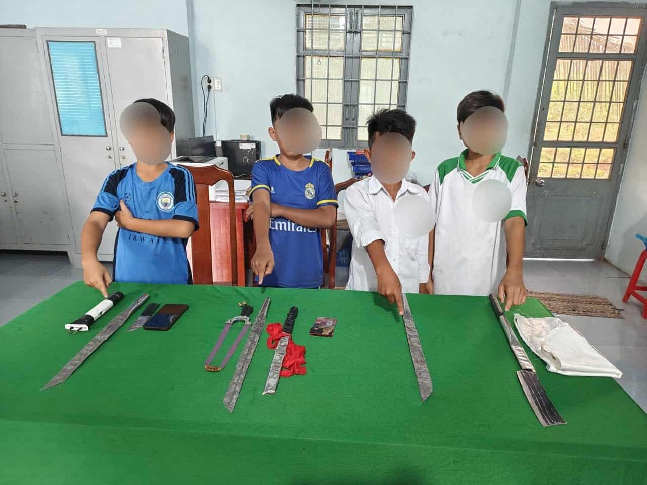 Theo đó, vào ngày 27/11/2025, phía trước khu vực một trường Trung học cơ sở trên địa bàn xã, Công an xã đã phát hiện nhóm 04 học sinh lớp 6 có hành vi tụ tập, mang theo hunkhí tự chế với mục đích đ/ánh nhau.
